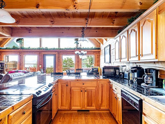 Gross rental income in 2021 @ 112k and 2022 @ $72k and counting. Seller to pay 2% CLOSING COSTS with acceptable offer. Rare opportunity to acquire a 3BR/3.5BA cabin sitting high atop Ski View Dr with proven income! Classic Smoky Mountain long range views from one of the highest points in the Chalet Village area. No scary roads here! Roads are paved and maintained by city & HOA. So high up you can look down upon Ober Ski Resort from the back deck and Mt. LeConte in the distance.