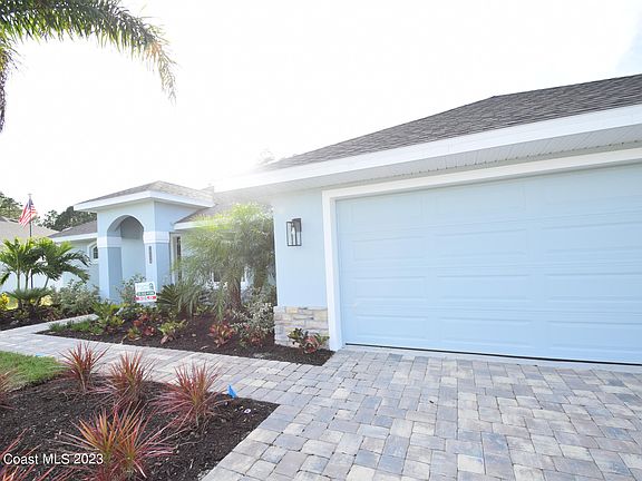 Lot 34 Sanibel Cove New community in Palm Bay with 50 homesites total. Brand new construction home. Enjoy this beautiful 3 bed 2 bath 2 car garage with large back porch. Open plan design with family room, dining room open to kitchen with large breakfast bar. Beautiful vinyl plank flooring in all main living areas, tile in bathrooms & upgraded carpet in 3 bedrooms. Master suite boasts tray ceiling, slider door direct access to covered porch, & a large glamour master bathroom with soaking tub, spacious tile walk in shower, dual sink vanity with granite countertops & walk in closet. Other features: ceiling fans, soft close cabinets with crown, indoor laundry room, garage door opener, brick paver driveway, city water & sewer, sidewalks & much more!