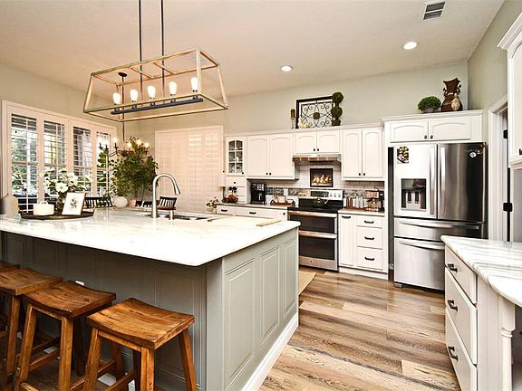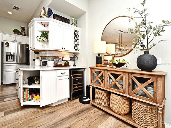 Experience the pinnacle of luxury living in this exclusive Heathrow home, offering breathtaking water views and a completely reimagined floor plan. Meticulously remodeled, this residence features a custom gourmet kitchen with stunning marble countertops, a massive center island, bar area, and sleek stainless steel appliances. Every detail has been thoughtfully designed, from the plantation shutters to the beautifully manicured landscaping. Enjoy serene evenings on the expansive screened lanai, overlooking the tranquil water. Inside you'll find remodeled bathrooms and new luxury vinyl plank flooring throughout, adding style and durability. Don't miss this rare opportunity to own a masterpiece in the heart of Heathrow!