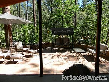 The perfect escape! Nestled in the heart of Groom Creek, this 900 square foot cedar summer home is fully restored. The brick entry steps lined by ivy, open up to a large brick patio protected by tall pines and oak trees. The open concept living area features a wood burning fireplace, high-end laminate flooring and two sky lights that bring the outdoors in brilliantly. The cedar walls and pine plank ceiling fill the room with a warm glow. The kitchen is new with plenty of storage and stainless appliances: dishwasher, disposal, full sized range/oven, microwave and refrigerator. The main house has two bedrooms with a small but tastefully renovated three-piece bathroom. Connected by a tree lined wood deck to a 350 square foot studio featuring hardwood floors and a full bath with a tub/shower combination. Other features of the studio include stackable washer and dryer and a loft for play or storage. The lot is one-quarter acre fully fenced with a shed for garden tools and a drip system in planters. The lot is level and sits high for outstanding forest views and excellent drainage. Home sold finished.Additional property info: http://www.forsalebyowner.com/listing/2-bed-Vacation-Home-for-sale-by-owner-1254-E-Stagecoach-Rd-86303/23999346?provider_id=28079