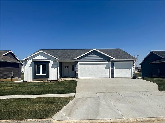 Look no further, this “zero entry” new construction is a must see. 3 bed, 2 baths, amazing oversized 4 stall garage! Featuring a spacious kitchen with corner pantry and dining area, granite counters with breakfast bar, large master suite with walk-in closet. Living room offers volume trey ceiling, gas fireplace. Additional amenities include: white painted trim, granite counter tops throughout, main level laundry room, beautiful maintenance free covered deck, patio, appliance package with refrigerator included. This home is built with quality and style. Close to schools. Taxes not fully assessed.