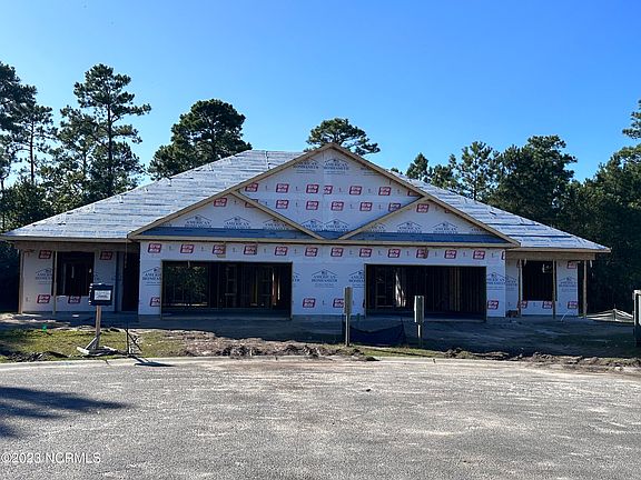 Enjoy all of the benefits of new construction in this new villa by American Homesmith. A charming rocking chair front porch beckons you as you approach, setting the stage for a lifestyle that's relaxed and maintenance-free. Step inside, and an inviting foyer greets you, seamlessly flowing into a dining area adorned with intricate wainscoting and a tray ceiling instantly creating a warm and inviting ambiance for gatherings. Laminate flooring, not only exuding elegance but also adding easy upkeep, guides you through this open-concept living space, smoothly integrating the dining area, great room, and kitchen. The great room is a true focal point, boasting a tray ceiling and a gas fireplace enveloped by custom built-ins. The kitchen, with a substantial island at its heart, is ideal for socializing while preparing meals. It showcases stainless steel appliances, tile backsplash, and quartz countertops. A pantry and additional storage are thoughtfully located in the laundry room just off the kitchen and garage. The primary suite, is a private, personal retreat. It features a tray ceiling, walk-in closet fitted with wood slat shelving, and an en suite bathroom that's spa-like in its allure. This bathroom boasts a fully tiled walk-in shower, double sink vanity, linen closet, and private water closet. Two generously proportioned guest bedrooms with a hall bathroom, ensure ample space and comfort for family or visitors. Enjoy the privacy of your outdoor screened porch with patio. Palmetto Creek's allure extends beyond your doorstep, with its proximity to the pristine beaches of Oak Island and Holden Beach. Within the community, a world of amenities awaits, including a clubhouse with a resort-style pool, fitness center, trails, tennis courts, and a putting green. Additionally, a kayak and canoe launch allows you to explore the tranquil waters. This location is truly the epitome of coastal living.