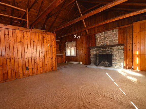 Get a piece of Pocono paradise. Nice Ranch with log cabin interior & beautiful wood beams. Open floor plan features living room with stone fireplace & kitchen with original wood cabinets. 2 cozy bedrooms with closet space & a full bath. Awesome open loft upstairs can be an extra room for office or lounge area! Car port with stone flooring also serves as covered side porch where you can entertain & overlook a big wooded backyard. Small deck at rear of home. Outside of the house is vinyl for low maintenance. New hot water heater! Access to community club & lake. LOW TAXES! Easy access to major routes. A must see! Call for showing today.