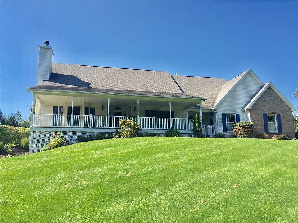 Nice Ranch custom built by sellers. BIG porches front & Back, covered and long, surrounded by landscaped gardens & Pines for total privacy.Hardwood floors, fabulous great room... big, elegant & cozy with beautiful wbfp. Great floor plan, open yet just private enough. the Master Suite is Huge! it also leads to the rear covered patio. The bathroom & walk-in closet are also enormous. A Walk-out, on a big private lot, a Ranch, in Victor, nearly newish/slightly used...why build? 10 minutes to 390, E View Mall, 5 to school & walk to the Village , nature trails & parks. Low Victor taxes.