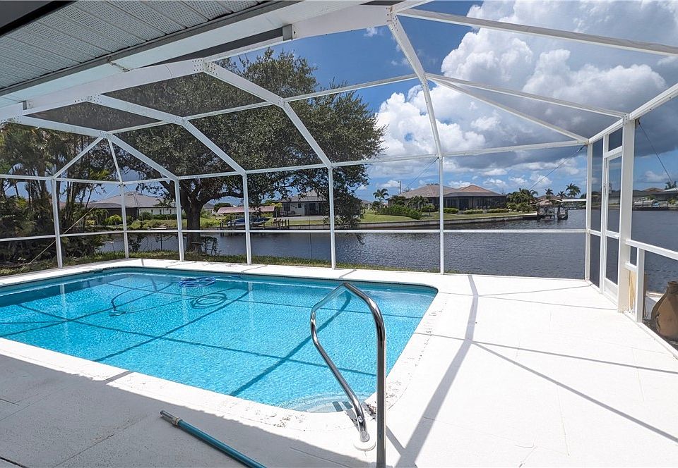Stunning Waterfront Pool Home for Rent Gulf Access! Experience the ultimate Florida lifestyle in this beautifully remodeled 3-bedroom, 2-bathroom home on 146' of waterfront frontage with West-facing backyard, offering breathtaking sunsets over expansive connecting canals. Enjoy your private pool with serene water views, oversized lot, and garage. The home has been freshly painted and upgraded with new floor tiles, modern bathrooms, and a fully remodeled kitchen featuring a large island perfect for entertaining. Open-concept living ensures every main room captures the pool and canal vistas. Boating enthusiasts will love the Gulf access. Tenant is responsible for electricity and maintenance. No smoking inside; small dog allowed with pet deposit. Good credit and employment verification required. Don't miss this rare waterfront gem schedule your showing today!