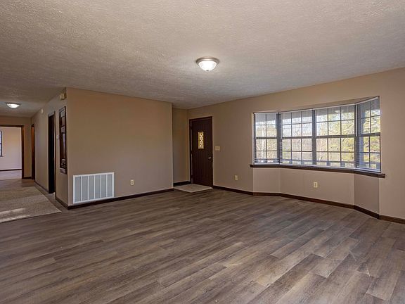 Spacious Updated Home. This three bedroom, two bath home has fresh paint, new vinyl siding, gutters, vinyl plank flooring and carpet. The kitchen has plenty of cabinetry, breakfast bar and stainless appliances. A large living room has a bay window overlooking a covered, rocking chair front porch. The home has two drives, the main level has a new paved drive and a carport, the second drive is graveled and leads to a basement garage.