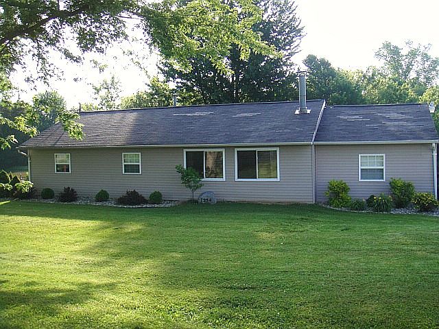This 3 bedroom 1 bathroom ranch home sits on 1.70 acres in the quiet country area of Peru. There are open fields in front, beside, and behind the house. There is a natural spring at the end of the road that is quite popular. The owner was born and raised in this house, so it has been taken care of and well loved. Interior and exterior has been remodeled over the past few years. The galley kitchen includes stainless steel appliances, recessed lighting, an island, and sliding doors leading out to the patio. The kitchen has light maple cabinets, a pantry cabinet, shelving, and wine bottle storage. The laundry room/closet with front load washer and dryer (stacked) is located off of the kitchen. All appliances are included. The attached 1 car garage was remodeled to be an addition in 2006. This includes a dining room area (flex area) next to the kitchen and a 3rd bedroom. The 3rd bedroom is separated from the other two bedrooms, which works well for guests or as an office. There is a hall coat closet, linen closet, and utility closet. Every bedroom is equipped with closets and ceiling fans. The garage/pole barn is detached and is 32 x 40 (1280 square feet) with 10 ft. ceilings. Rural water is hooked up in the garage and ready for use. There is an attic area above the garage for extra storage. There is no basement. **We are looking for a buyer who can move in late October/November.