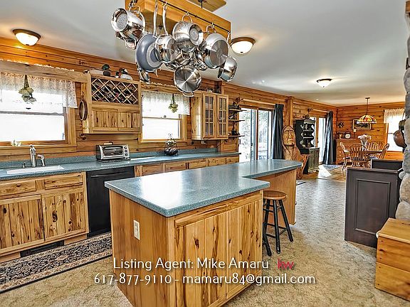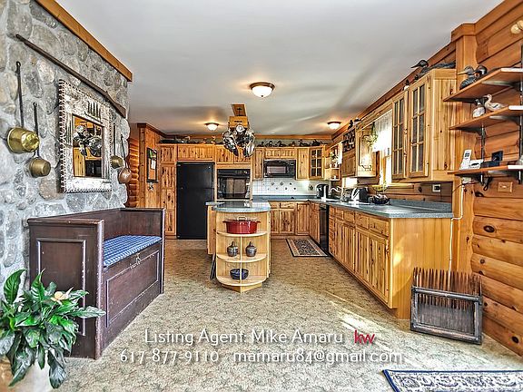 The best of both worlds... A mountain get away on the water. Stunning waterfront log home is only minutes from the beach and across from 300 acres of conservation land with hiking and bike trails. Built for entertaining with large living room seamlessly flowing into the dining area and cabinet packed kitchen with center island perfect for morning coffee. Floor to ceiling stone fireplace for cozy New England winters, master bedroom with slider and finished lower level with full bath makes a great play room for any age. Located on spring fed Lovells Pond with fishing, swimming, and kayaking in the summer & ice skating and fishing in the winter. Sunsets, views, and the lifestyle you deserve.