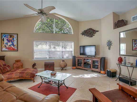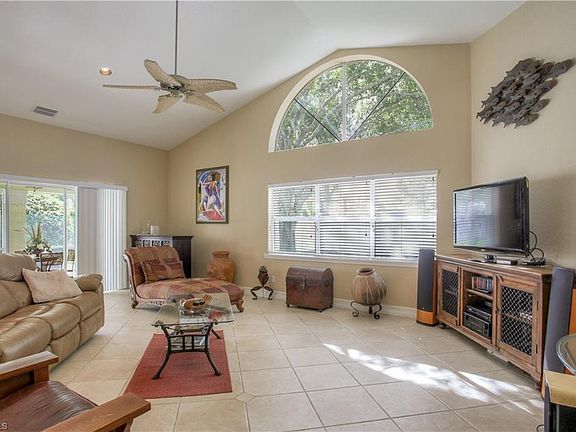 This single family residence in Naples is minutes away from four beautiful gulf beaches and the Mercato and Coconut Point malls which offer multiple restaurants and shopping opportunity's. This light and bright three bedroom home has a very large fenced backyard with room for a pool and then some. The great room offers high ceilings and sliders off to the screened in lanai. Large tiled flooring on the diagonal is through out this lovely home. This is an open floor plan design located on a cul de sac in the gated resort style community of Sterling Oaks. This home is a short stroll to the amenities which include a Jr. Olympic pool, a hot tub, NEW fitness center and NEW locker rooms, a cabana bar where you can enjoy lunch and a cold beverage, bocci and pickle ball courts and a newly renovated Florida style clubhouse with restaurant and bar. There is an optional tennis membership which offers 12 clay tennis courts that are lighted for night play and an onsite USTA teaching pro. This is a very social community with fun functions throughout the year. Enjoy this lovely home in a fantastic location in a great gated community.