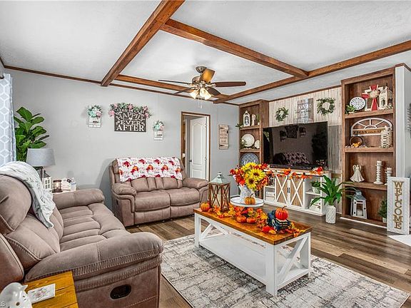 Come take a look at this wonderfully maintained charming manufactured home. This home features a spacious kitchen with an island and large pantry. The living room has beautiful faux beams. There is a country barn door leading into the laundry room. Primary bath has a dual vanity separate shower and tub. Enjoy the spacious back yard while sitting in the gazebo. There is also a 10 X 20 shed to store all your lawn needs.