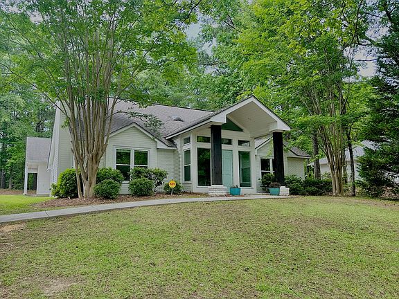 Very unique and updated 4 bedroom 3 bath home offers an open living/dining/kitchen floor plan on a larger lot conveniently located off E University Drive just one mile from Jordan Hare Stadium and a few blocks from the Gouge Theater. The downstairs has a large foyer, vaulted ceilings in living room with fireplace, dining room, large kitchen with eat in bar/plenty of cabinet space/stainless appliances and built in desk , laundry room, one guest bedroom and updated guest bath, flex space that is perfect for a home office, primary suite with updated primary bath. Upstairs has a nook at the top of the stairs and 2 spacious bedrooms that share a guest bath. The backyard has a nice bricked patio, and a very nice 2 car carport with storage closets. There is also a small storage building in the back. This home is very unique in its floor plan and style. Virtual Walkthrough: