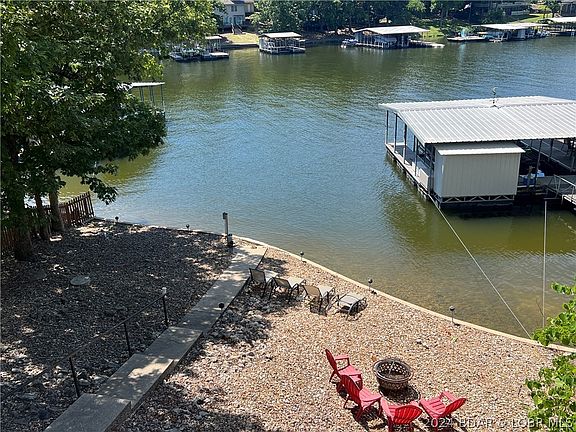 Wonderful Lakefront house with Deep Cove location and CALM Waters lakeside. SELLER HAS CONTRACTED TO PURCHASE AND INCLUDE IN LISTING, A 2 WELL DOCK WITH CONCRETE DECKING ALONG WITH 12X32 & 10X32 SLIPS, 12 FT. ROOF, 8X36 SWIM PLATFORM WITH STIFF ARM AND 50 FT. CONCRETE DECK RAMP. DOCK IN PROCESS OF BEING MOVED TO PROPERTY. CONTINGENT ON EXISTING AMEREN PERMIT BEING TRANSFERRED, SEE PICTURES. Great for Skiing or Sunny Days on the Raft! Awesome location in Workman Hollow Cove at the 8mm. Bobbers Restaurant at Alhonna Resort with Fuel for the toys in the cove! 8 Mile Marker location is in near all the hot spots of Toad Cove, Shady Gators, Tap and Grill, Take your pick! Main level living with Primary suite that includes walk-in closet and full bath, Vaulted Ceilings, Kitchen has solid surface countertops, fireplace. 2 living areas, Gentle driveway with attached 2 car garage. Quiet street, Low maintenance yard lakeside and Concrete Seawall. This Lake House is what everyone is looking for, Fun at the Lake!