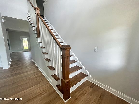 THE BRUNSWICK CC2355 ELEV F- 4 BR/2.3 Bath Energy Plus Home w/2355SF. Entrance of this 2 story home showcases a 2 story ceiling with hanging light fixture. Main Level Features: Gourmet Eat-in kitchen w/large island, walk-in pantry, granite countertops, built-in desk space. Kitchen breakfast area leads to a covered deck & grill deck, a perfect outdoor space. Great room w/gas log fireplace open to kitchen. Elegant formal dining room w/stunning coffered ceiling and wainscoting detail. Half bath w/pedestal sink and oval mirror. Built-in bench and cubbies make the perfect landing area for backpacks and shoes in the garage entry. Upper Level Features: Primary suite features trey ceiling with crown molding, 2 walk-in closets, dual sinks, quartz countertops & large tile shower. Additional 3 bedrooms & full hall bathroom with tub/shower combination. Laundry room is conveniently located to all of the bedrooms. Security System. Professional Landscaping.