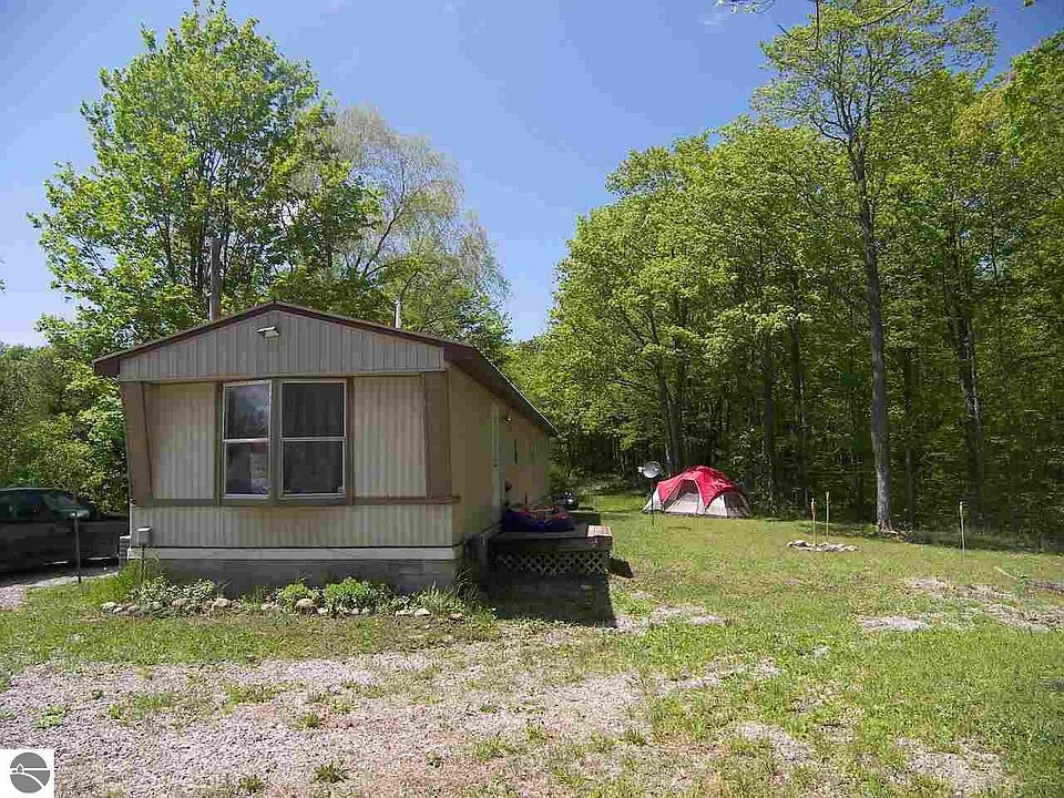 Modest, but affordable living in central Leelanau County! This 1987 vintage Mansion, single wide, is in good condition and was renovated with carpeting and vinyl flooring, has a "newer" furnace (with A/C too), and some plumbing fixtures. Block foundation/crawl space (not skirting), decent steel roof, on a partially open, partially wooded, beautiful, 2 acre site. Close to TC, close to Glen Lake Schools, it's currently tenant occupied on a month to month basis, and they'd like to stay (think "income property"). There's room to build a garage/pole barn if desired. 16x10 storage shed comes with, but needs a little TLC