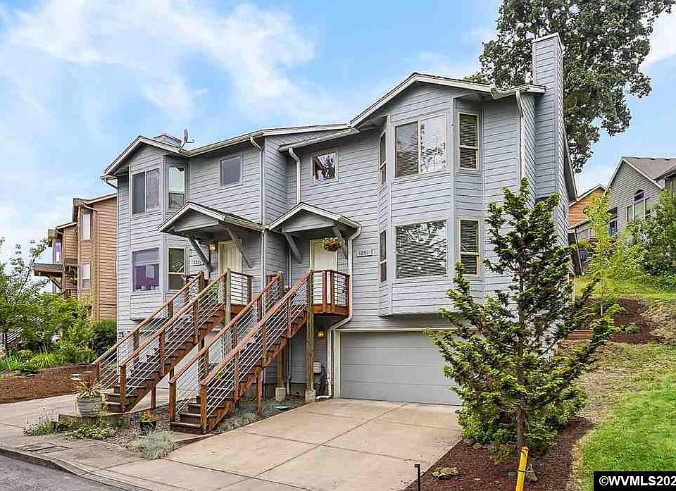 Accepted Offer with Contingencies. Beautiful modern home with open floor plan and lots of light! Spacious living room w/gas fireplace & large windows overlooks quiet green space. A modern dining room w/hardwood floors & French doors open onto a new deck, perfect for your outdoor get-togethers! The master suite has large dual closets and more beautiful windows with a view and lots of natural light! The master bath features walk-in shower and double sinks. Laundry is conveniently located upstairs near the bedrooms and includes washer/dryer.