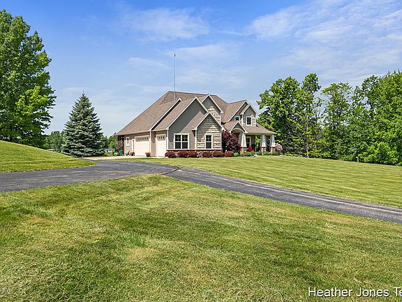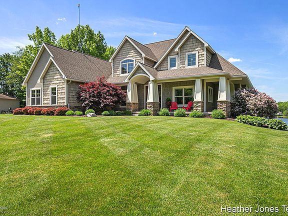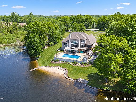 Absolutely stunning executive home situated on 8.68 acres with 270' all sports lake frontage! 18X36 in ground heated salt water pool with stamped concrete patio. This spacious home has 5286 Sq. Ft., 5 Bedrooms, 4 1/2 Baths, 2 Kitchens, 2 great rooms, Theatre room and covered patio at walk out level. 3 stall garage, wonderful screened porch and beautiful deck. Attention to detail is evident throughout this custom 2 story walkout.The Master Suite is on the main level as well as an incredible great room with soaring 25'ceilings, stone fireplace and an impressive window wall offering great views of the lake. The island kitchen is spacious and well- appointed including a formal dining room and a more casual dining area. The walkout level is truly set up for entertaining summer or winter!