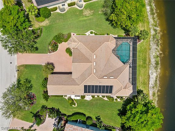 Arthur Rutenberg custom home shows like a model in Exclusive Oak Bend Neighborhood at Verandah! NO NEED to be on the waitlist for golf as this home has a FULL GOLF MEMBERSHIP AVAILABLE!! Large covered private lanai has picture window screens for terrific pond and nature area views, plus an outdoor fireplace and plumbing for an outdoor kitchen.. NEW ROOF in 2020 and new solar panels in 2021. NEW REFRIGERATOR 2023! New Aqualink just installed. Motor operated storm shutters, impact glass and a whole house generator. Exterior of home was recently painted, and newer epoxy floors in garage. One AC system new in 2019/20. Closet in garage is climate controlled. Whole house water treatment system. Wood flooring in office. Check out the many custom features of this Rutenberg home including the large utility room. Master bedroom suite and Master like guest suite each with dual sinks. Verandah homeowners may choose a golf or social membership. Both are available on this home. WIFI and cable included in HOA fees, and no minimums in the three restaurants. Miles of biking, walking and jogging trails.