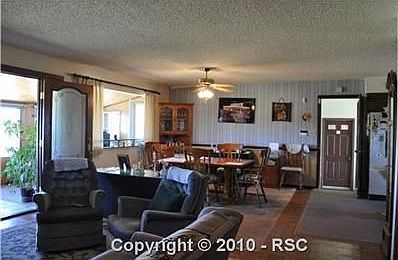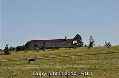Ranch home with full basement, converted to walk-out. Breathtaking views of Front Range and Pikes Peak. Zoned for 2 horses. Main level deck converted to sunroom with tile floor. Oversized 2 car garage, workshop attached through breezeway to main house. Completely fenced with solar powered gate. A little dated but move in ready. Large storage shed with overhead door. Lots of potential.