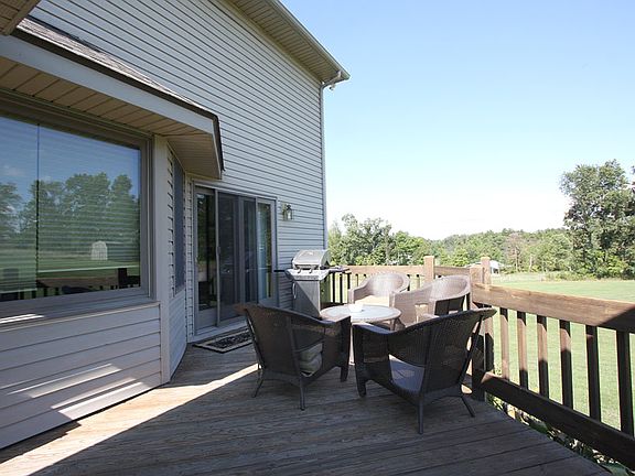 Impressive and a very spacious feeling contemporary home situated on 5 acres of land, light and airy floor plan that features 3 - 4 bedrooms and 2.5 baths, a beautiful 2 story foyer that opens into the large formal living room, gorgeous cabinetry filled kitchen with breakfast bar and included the major appliances, open dining area, great main level family room with fireplace and glass sliders that open on to the relaxing rear deck, walkout lower level with rec room and bar area, attached 2 car garage with paved drive, awesome in - ground swimming pool with covered party deck, great location among quality homes. $239,900.