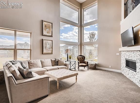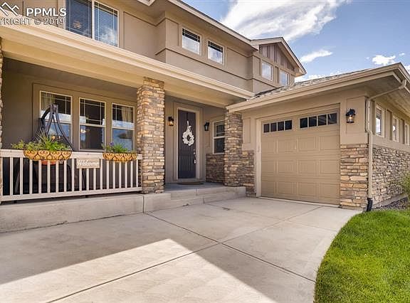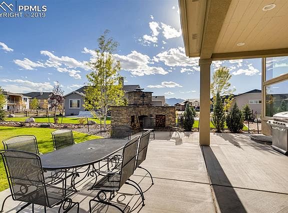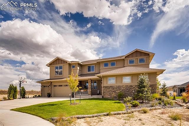 Stunning home boasting 6200 sq ft on 16,400 sq ft lot. Upgrades include high end granite counters, Gourmet Kitchen with gas range, double ovens, huge walk-in pantry, large eating area, extra tall kitchen cabinets, vegetable sink, desk area, butlers pantry w/ice maker and under cabinet lighting. Wood Floors, stone surround gas fp in great room. Multi-Gen Jr Suite on main level w/living room. Study/retreat in master, double sided gas/stone fp, 5 pc bath with free standing tub, barn door. Large loft upstairs. Finished basement with 9” ceilings. Family room has surround sound, built ins, wet bar w/frig. Multi use room. Built in 2016 this homes offers amazing space. Flat level yard w/room for volleyball and entertaining. Wall of windows, high ceilings, professionally landscaped lot, sprinkler system, basketball area, covered patio, covered front porch. Huge laundry upstairs, 6” baseboard, wrought iron railings, custom built-in entertainment center, game area, large flex space could be hobby/craft room/exercise room/home school room. Finished storage space, 2 A/C's and Furnaces, Central A/C. All bedrooms have walk in closets, all baths have quartz counters and tiled floors. 5 ceiling fans. Enjoy the Colorado outdoors on the expanded back patio boasting built in wood burning fireplace with gas/propane ignition. Incredible lot with Pikes Peak and Front Range Views on a cul-de-sac. 24 foot deep attached garage, with 4th bay for man cave/workshop or additional vehicle. Flying Horse is known for it's award winning private golf courses, restaurants, rec center, exercise facilities, pools, spa, covered tennis courts, basketball courts, pickle ball, and many other amenities. Proposed park within walking distance in future with ball field and walking/running trail (see supplemental attachments on MLS). Exquisite home and community!