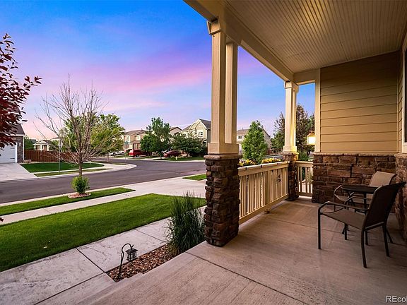 Why buy new when this pristine ranch by the original owners has it all! Located on a private cul-de-sac with nearby community pool and Buffalo Run Golf Course. The covered front porch will greet and invite you inside. The main level has two bedrooms, two full baths, a dedicated office/study and laundry room. An additional non-conforming bedroom and full bathroom are located in the nicely finished basement. Exquisite finishes include hardwood floors, bull-nosed corners, wide baseboards, recessed lighting, 9' ceilings, plantation shutters and more! An entertainers dream, take in the beautiful Colorado sunsets and mountain views from the large covered back patio complete with fans, recessed lighting and tile flooring. On chillier nights, relax in the attached covered sunroom or head inside to watch your favorite movie or game with built-in surround sound & remote wiring for your electronics. This kitchen will delight all with gleaming granite countertops, butcher block island, farmhouse sink, pantry, upgraded stainless steel appliances, dining & eat-in areas. Solid Cherry cabinetry with custom hardware and crown molding include additional pull-out drawers in the lower cabinets. Great separation of space while maintaining a good flow and open floor plan. This home checks all the boxes and includes water softener, radon mitigation, sprinkler system, whole house fan and gas fireplace. The list goes on! Do not miss your opportunity to view this beautiful property and make it your new home!