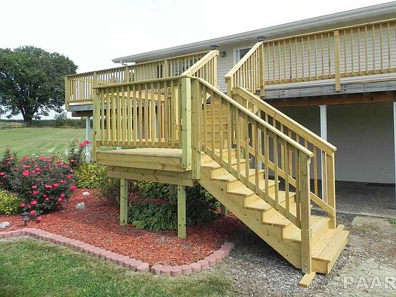 RARE opportunity on 2.42 park like acres, just minutes from Pekin. 3 BD/ 2 BATH w/ new front & back decks. Immaculate condition-hickory kitchen cabinetry w/ stainless appliances, eat-in kitchen remodeled bathrooms and neutral colors. Lower level offers spacious family room w/ gas log stove (propane) & surround sound speakers. 12 x 16 shed for lawn gear and oversized 3 stall garage for car enthusiasts. Tons of storage & closets. Come enjoy a country setting where life seems to slow down a bit. Subject to seller finding home of choice.