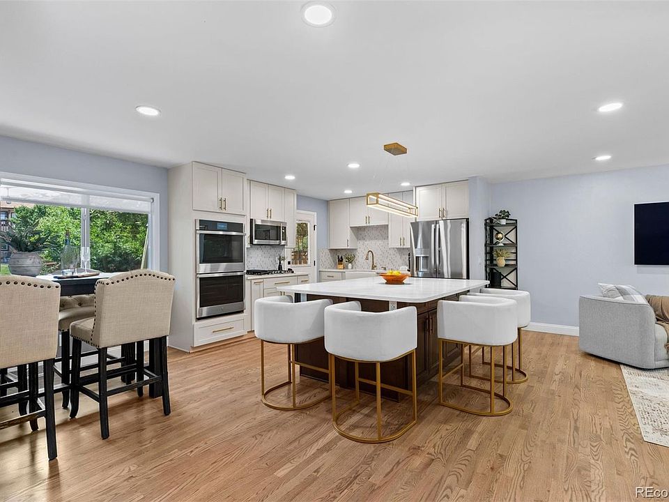 Thoughtfully remodeled and lovingly maintained, this four bedroom, three bath home in Green Mountain Village features a stunning new kitchen with quartz countertops, oversized kitchen island with both storage and seating, 42” cabinets, additional sitting/dining area, and all new appliances. Additional highlights include a brand new roof (installed in July of 2025), newer furnace and A/C, new flooring, underground sprinkler system, garden drip system, and new patio. Conveniently located near Green Mountain to enjoy all your favorite hiking and bike trails, as well as Red Rocks (ten minutes), Bear Creek Lake State Park, and easy access to 6th Avenue and I-70 to quickly get up to the mountains or downtown. All that plus the bonus of being within walking distance to all three public schools, grocery stores and many fun eateries and coffee shops. Don’t miss this incredible opportunity to own this gorgeous, updated home in Lakewood!