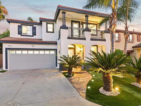 Welcome to 12543 Carmel Canyon Rd, an exquisite single-family home nestled in a private cul de sac in the heart of Carmel Valley. This stylish residence offers 2,328 square feet of luxurious living space, features 4 spacious bedrooms, a versatile loft space, and 3 beautifully renovated bathrooms. Step inside to discover architectural elegance at every turn, with custom built-ins, crown moldings, and high ceilings. The expansive living areas are adorned with stunning tile floors, custom window treatments, recessed lighting, and modern cabinetry, creating a bright and inviting ambiance throughout. The heart of the home is the beautifully renovated chef’s kitchen, which seamlessly blends modern convenience with timeless style, ample storage and top-of-the-line appliances. The adjacent dining and living spaces provide the perfect settings for intimate gatherings and grand entertaining. The primary bedroom suite offers a serene retreat , and features new cabinetry, marble accents, and custom finishes. French doors open onto a spacious balcony with a stunning view. The additional bedrooms are equally well-appointed, ensuring stylish comfort for all residents. A dedicated upstairs laundry room provides added convenience. Step outside to a peaceful oasis, featuring water wise landscaping including turf, hardscape and well established queen and sago palms. . Enjoy al fresco dining and relax on your back patio with built-in BBQ or simply unwind in the tranquility of your private outdoor living space. System upgrades throughout the home include solar, a Ring security system, keyless entry, a customized fully finished garage with a Tesla charging station, Redline cabinetry, and RaceDeck flooring. A 50 amp outlet recently added for additional EV charging. The plumbing system upgrades include a new water heater, Rayne Water Softener, and Reverse Osmosis System. The central location offers proximity to exceptional schools such as Torrey Pines High School, Canyon Crest Academy, Cathedral Catholic High School, Pacific Trails Middle, Carmel Valley Middle, and Ashley Falls Elementary School. Additionally, it's a short walk to The Bay Club, one of San Diego's premier fitness facilities. This beautifully appointed and fully renovated home at 12543 Carmel Canyon Road offers luxury, comfort, and style in a prime Carmel Valley location. Don’t miss the opportunity to make this your new sanctuary. Schedule a private tour today!