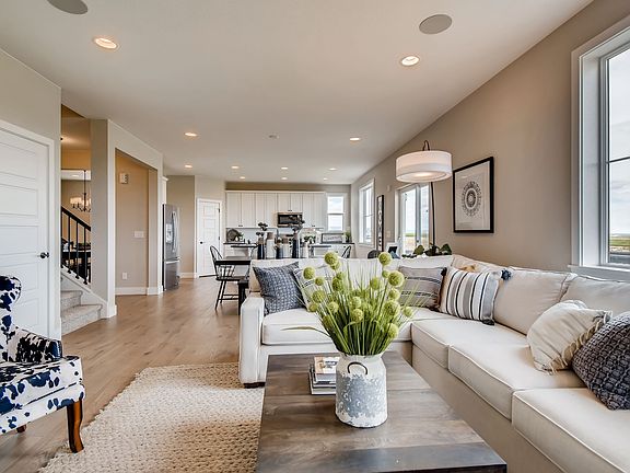 You'll love the versatile open-concept layout of the Aspen at Anthology North. As you enter the home, you'll find a lovely study off the foyer?an ideal spot for privacy and relaxation. A spacious kitchen is situated in the heart of the home?boasting a gracious walk-in pantry, a charming breakfast nook and a large center island. Other main floor highlights include a wide-open great room, a formal dining room and a sizable secondary bedroom with access to a full bathroom. Upstairs, there is a convenient laundry room, an expansive loft and three additional bedrooms, including the lavish primary suite?showcasing a roomy walk-in closet and a deluxe private bath with dual vanities and a walk-in shower. Options include: 3-bay garage Walk-out basement Fireplace in great room