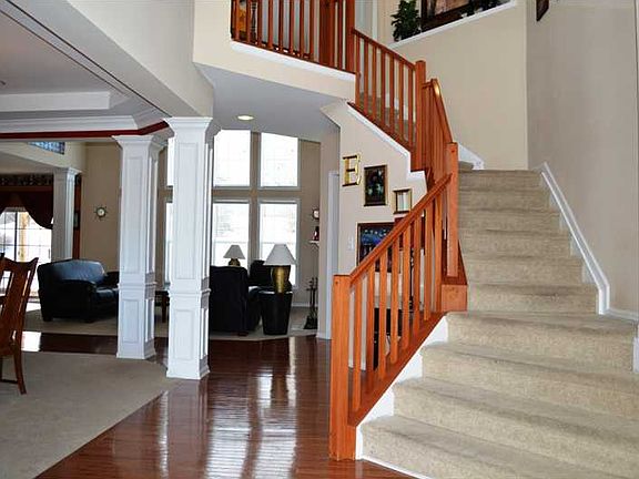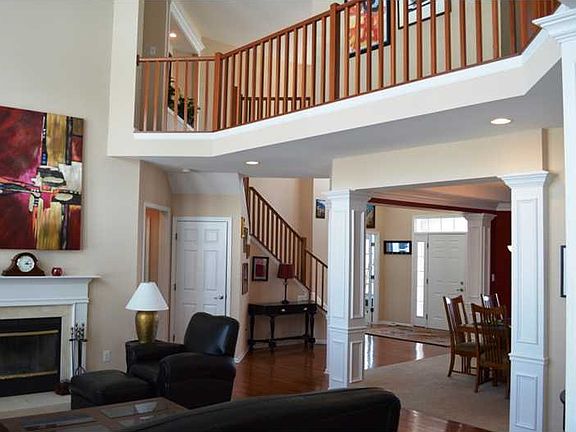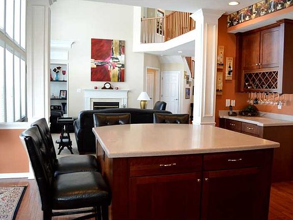 Spectacular open concept home features beautiful woodwork, large kitchen with island, first floor master and stunning office/den area. Large entertainment areas on every level. Plenty of windows for natural light and views of front pond/fountain. Very private backyard with patio, wood deck and arbor - landscaped with colorful annuals and shrubs. Large workshop in basement - lots of storage space throughout home. Community clubhouse, pool, playground, nature area, basketball and soccer field.