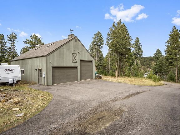 Main level living at its finest! Come enjoy the mountain privacy with amazing sunrises and abundant wildlife from several decks, plus your very own heated greenhouse, fire pit and play structure, with ample paved parking on almost 12 acres. The large detached garage is heated & measures approximately 35 x 43 with a 12 x 12 door for inside RV parking, plus loft storage and workshop possibilities. For commuters, it is only 10 miles to C-470 at Kipling from the bottom of the driveway. This stunning home has too many features to list, and includes a low maintenance stucco exterior, large closets in every bedroom, laundry rooms upstairs & downstairs, an additional storage room in the basement and a seasonal stream. Be sure to see video!
