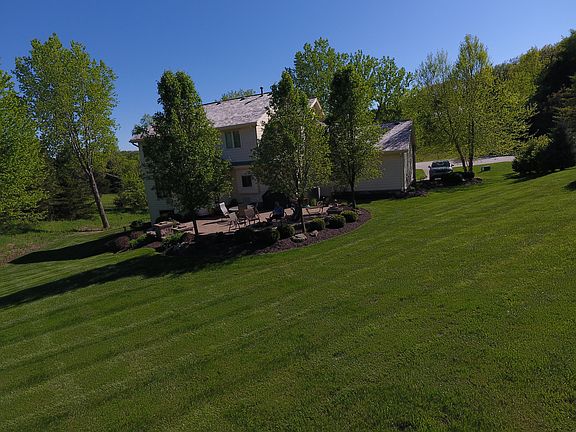 Scenic 3+ acre country setting on quiet cul-de-sac in Heartland Country Estates! 2 story home - 4 bedroom - 4 bath - 3 car garage. Italian marble entry, family room, gas log fireplace, wood floors in updated kitchen & dinette overlooking large inlaid patio with gas firepit. 1000 sq. ft. finished lower level with ¾ bath, wet bar & Vermont Castings gas stove walks out to 2nd inlaid patio. Hardiplank cement siding, newer Pella windows & cedar shingle roof. Must see this well-maintained country home!