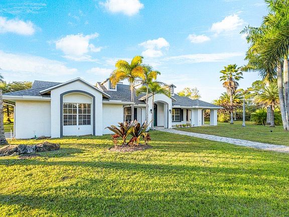 Enjoy quiet living with this beautiful, 4 bedroom and 3 bathroom CBS pool home, situated on a huge dry 2.5 acres, with access from 3 different streets. located in The Acreage of West Palm Beach! Beautiful finishes and features throughout, including: NEW roof (2021), New a/c system, new water filtration system, wood style flooring throughout the main areas of the home, a gas fire place, updated bathrooms, an open and spacious floorplan with lots of natural light, and French doors! The open concept kitchen features 42'' Raised Oak Cabinetry, a sleek and seamless cooktop, wall oven, tiled backsplash, Enjoy the South Florida life style with the covered patio and large 30' x 15' pool, perfect for entertaining friends and family, or simply relaxing poolside.
