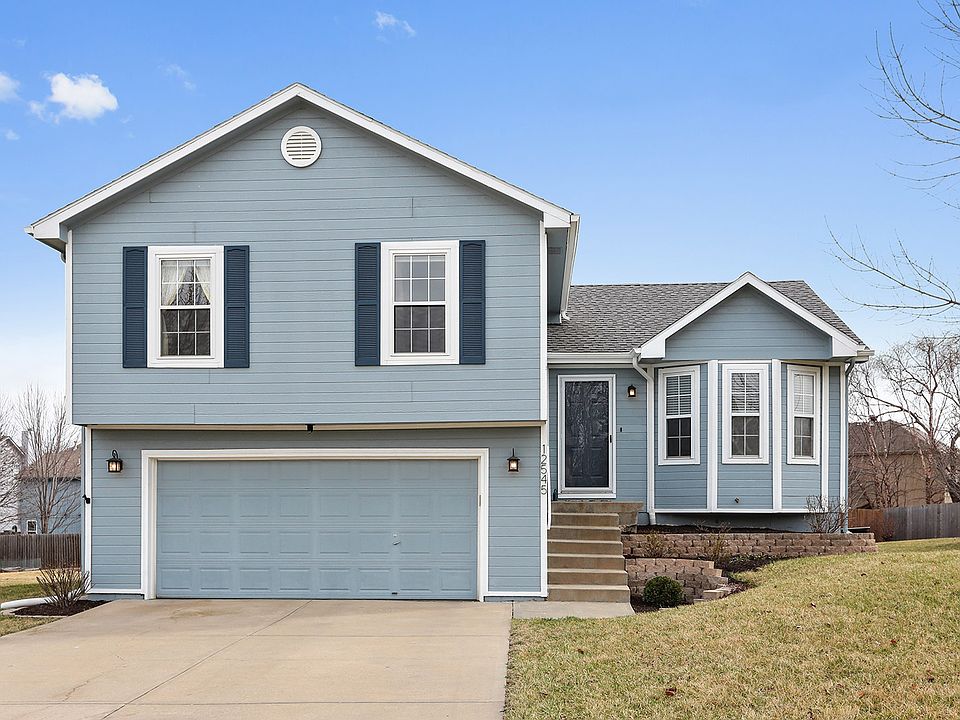 Beautiful Olathe Home in a great neighborhood! This move-in-ready home is clean w/new carpet & fresh paint throughout! Spacious, open layout w/a main level living space & additional lower level family room w/fireplace. Bedrooms are all a nice size...Newer 4th bedroom in the lower level makes great guest space/office or play area. Huge laundry area. Large deck opens to large, flat backyard. Newer roof & exterior paint. Great location with easy highway access!