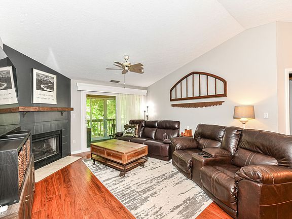 This immaculately updated 2-bedroom, 2 full bath, condo is located in the heart of Carmel. Walking distance to the Palladium, Arts District, City Center, Shopping, Dining and the Monon. Condo recently updated with remodeled kitchen w/granite counters, recently remodeled bathrooms, fresh paint including baseboards/doors, custom California Closets (2022), Newer S/S appliances, HVAC (2016), water heater (2018), patio enclosed and new patio door, new garbage disposal (7/2024), Reverse osmosis system, New Rfactor insulated flooring on deck making it an all season room, beautiful newer flooring throughout and features cathedral ceilings and wood burning fireplace. This upper, end 2nd floor unit with balcony, comes with a reserved parking space AND garage. Full access to swimming, tennis courts, clubhouse and exercise room. A well cared for, quiet, park like community.