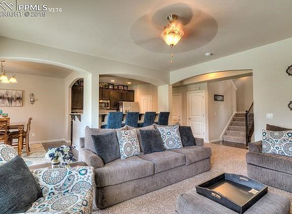 Immaculate better than new 5 bed 4 bath 3 car garage Jackson model by Saint Aubyn!! This Meticulously maintained 3530 sq ft two story home is three houses down from a beautiful park, playground and baseball field as well as directly across the street from an open space with access to one of the many walking trails and short walk to the Rec Center with 2 Pools, Gym, Basket ball courts and so much more in the highly sought after Meridian Ranch golf course community! On the main level you're greeted by a bright and open feel and high ceilings, gourmet kitchen featuring 42" cabinets, granite countertops, breakfast bar, large pantry and stainless steel appliances. The dining area has walk out access to an oversized cement patio perfect for entertaining as well as a fully landscaped (and fenced) backyard complete with flower boxes, large open living space, half bath and perfect study/office space. The upper level you'll find a luxurious master retreat complete with tray ceilings, sitting area, 5-piece master bath, walk-in closet, and double sided fireplace perfect for those brisk Colorado nights. 3 additional good sized bedrooms are on the upper level, a full bath as well as the conveniently located laundry room! The fully finished basement would be a great guest suite with private room, full bath and wet bar! Large unfinished area ideal for storage or great wine cellar! This home has it all including White 2" blinds throughout and Central AC! Pre inspected by AMPRO home inspections! Comes with their inspection warranty and 5 year roof certification at no extra cost!