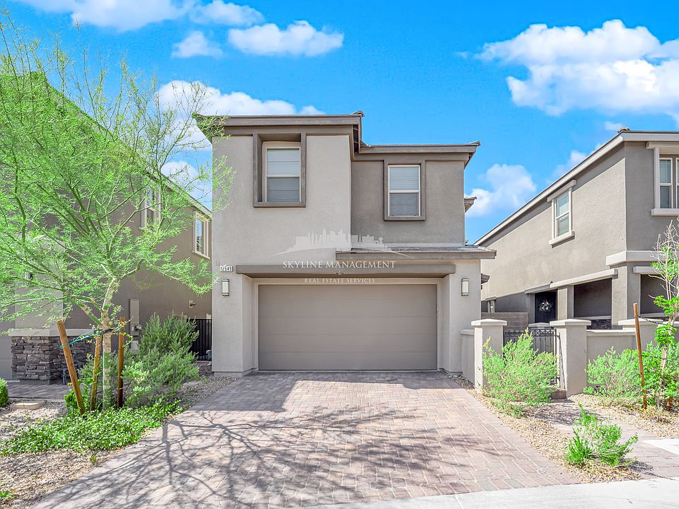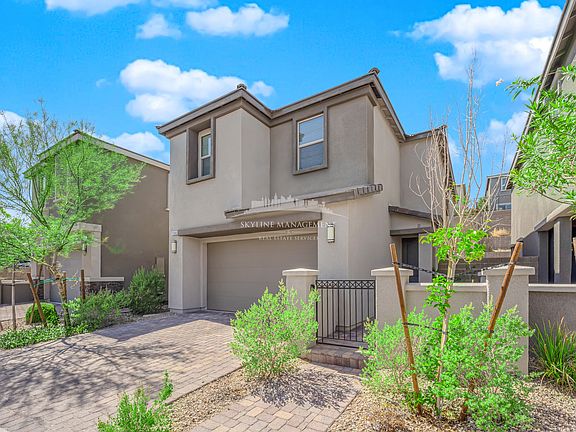 Experience luxury living! This Home features a deluxe primary bath, center-meet sliding door in the great room, garage service door, 9' ceilings throughout, stainless-steel appliance package with gourmet maple cabinets with quartz kitchen countertops, additional ceiling fan prewires, upgraded and additional insulation, water softener, and Venetian bronze bath faucets, showcasing the perfect blend of style and functionality. Summerlin West Community, move in ready!
