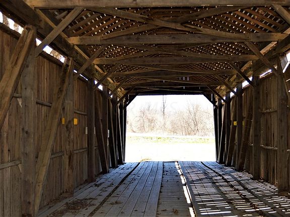 This is a very unique property in the Pickerington North attendance area. Historic Covered Bridge over Sycamore Creek is your drive entrance to the part of the property with house and barn. The home was built to take advantage of the views offered of the wooded ravine, creek and the wildlife that lives in the area. Large Oaks, Dogwoods, Beech, Maple and Sycamore trees throughout the property. The home has a split level entry, you walk up to the large bedrooms and laundry room and down to the Family Room, Kitchen and Office. Home was built in 1970 and has had no major updates and needs rehab on most of the home. The 45x45 barn has 4 horse stalls and is good sized to store equipment. Property sold as is.