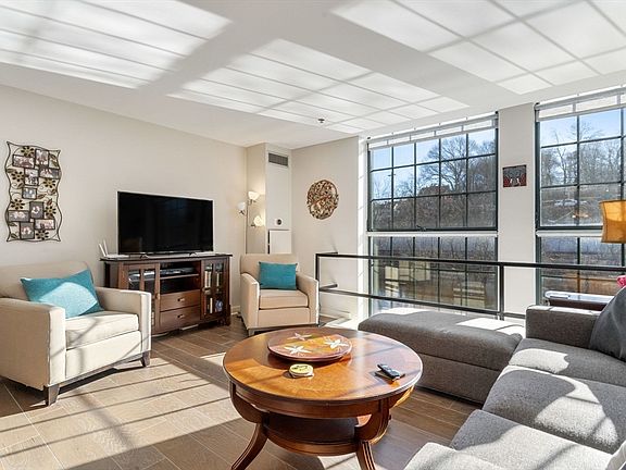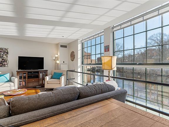 Sunlight fills this riverfront open concept 1BR/1.5BA unit in Baker Square's sought after Water Mill building. Floor to ceiling windows throughout (w/ newer blinds & BR blackout curtains) showcase stunning views of the Neponset River and spectacular light. The open floorplan LR/DR feels larger than its 1275SqFt, and leads to a modern kitchen with SS appliances & stone counters. The BR features ample closet space and a spacious en-suite bath. This unit is mostly standalone, sharing only one short wall with another unit. Baker Sq. amenities include indoor heated lap pool, whirlpool, sauna, fitness center and common riverfront terrace with fire pit & gas grills, overlooking the Baker Dam. Common bike room in the building- perfect for this location abutting the Neponset Trail bikepath. Lower Mills/Milton Village is an ideal location, with great restaurants and shopping, plus MBTA/Red Line Extension/trolley just moments away. Nest thermostats, W/D in unit. 2 off-street pkg spaces.
