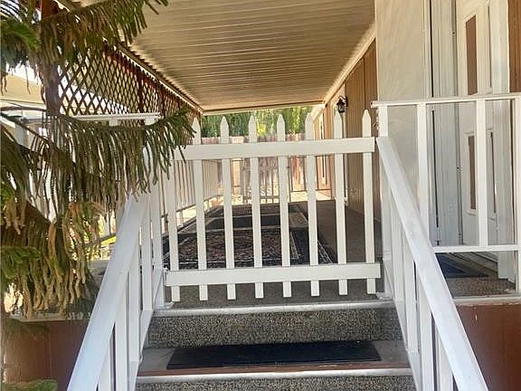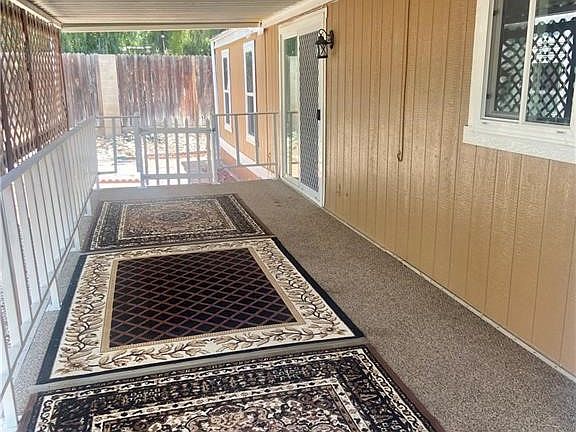 Doublewide in the Carriage Isle +55 Mobile Home Park. Low space rent of $425 per month includes Water and Sewer. Wood laminate floors and carpet throughout. Indoor Laundry room has plenty of storage. Newer Water heater approx 3 years. Front porch with railing and outdoor carpeting is perfect for sitting and enjoying mountain views. Rear yard has paver patio for bbq and has a storage shed with electricity. . Carport for 2 cars is covered. Park is close to mountains, close to shopping and all amenities. This unit is also very close to the guest parking area.