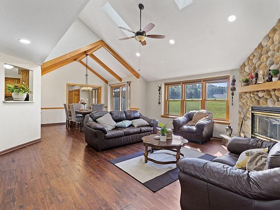 Natural fireplace, vaulted ceilings, skylights! This home is truly welcoming! Recent updates include a full remodel of the upstairs bath and half bath, light fixtures and quality hardwood flooring throughout the main level. The kitchen is complete with abundant cabinet space, an island to sit and eat by, quartz countertops, and a suite of Samsung appliances, among which include a silent drip dishwasher and digital screen wifi-enabled refrigerator. The basement is nicely finished with ample rec space and room to relax in. Private yard includes a paved patio, gazebo, and two vegetable gardens. Move into your new home just in time for the holidays! Schedule your private tour today!