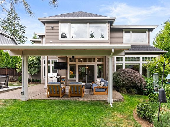 Lake Oswego living has never been lovelier than in this well-appointed quality beauty with welcoming great room spilling out to the expansive covered patio adjoining the stargazing Marquis spa, play area, and fenced yard. Delight in the rich millwork and high ceilings that create a spacious, light-filled refuge very near top-rated Lake Oswego schools, multiple parks including Freepons, George Rogers, and Luscher Farm, as well as Palisades shops & vibrant downtown LO. Host from the warm chef's kitchen featuring Jenn-Air appliances, plenty of storage, and nearby bar with beverage cooler. Cozy up with a favorite movie in the nearby family room, and you'll be the spot to be for the next big game BBQ in the outdoor living space with media mounts and generous yard. The upper floor layout is ideal with a plush primary suite featuring soaking pedestal tub and walk-in closet. 3 additional upper floor bedrooms/bonus flex room for guests, fitness studio, or dedicated media room. Ample options in the attached 2 car garage, mudroom, and in the under-stairs space converted to a darling play area. Wander down to Salt & Straw for a favorite scoop after dinner or enjoy family pizza night out in one of the Lake Oswego's destination restaurants. Picturesque landscaping within a consistent neighborhood with other quality built homes finishes off this new offering to the desirable LO market- this one won't last long!