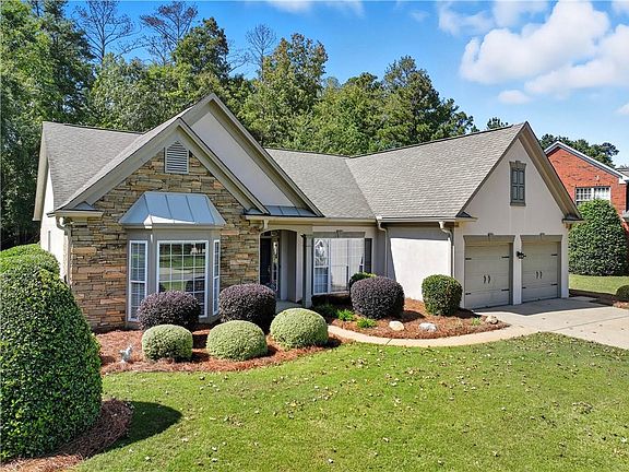 Discover the ease of main-level living in this beautifully maintained stepless ranch home, ideally situated in the sought-after Commons section of Longlake in south Forsyth county. This move-in ready residence offers the perfect blend of comfort and convenience. It features three bedrooms, 2.5 baths, a formal dining room, and a versatile flex room perfect for a study, office, or sitting room. The open-concept layout, with rich hardwood floors and abundant natural light, is designed for comfortable everyday life and easy entertaining. An oversized great room is complete with wall of windows and fireplace flanked with bookcase and niche for tv is perfectly positioned near the large kitchen. Off the main living area, the cozy screened porch overlooks the private, wooded backyard, making it the ideal spot for your morning coffee or an evening read. Best of all, enjoy low-maintenance living! Mandatory, year-round lawn care is included for just $75 a month. Residents can also enjoy the vibrant, active lifestyle Longlake provides, including a clubhouse, swim/tennis, and popular pickleball courts. Located off Peachtree Parkway and just minutes from GA 400, this gem offers the perfect blend of easy access and upscale living. This is your opportunity to secure a desirable, low-maintenance home in a fantastic, established neighborhood.
