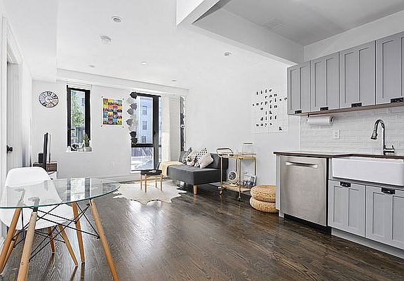 Welcome to 1255 Bushwick, a stunning boutique condominium development. Located in the heart of the hottest borough's most talked about neighborhood. This historic structure has been flawlessly transformed with the integrity and detail of its vintage fa ade intact. Here, modern finishes blend flawlessly with expertly salvaged materials, offering the perfect combination of modern luxury and classic elegance. Move in ready for August 8th, Apartment 2B is a spacious 571 Square Foot 1 bed/1 bath residence completely saturated with natural light from floor-to-ceiling windows! The contemporary kitchen offers brilliant Lagos quartz countertops alongside custom double square cabinetry, Fisher & Paykel and Bosch stainless steel appliances with a Summit recirculating hood and a white porcelain farm style sink set against a classic white subway tile backsplash. The bathroom is immaculately finished with elegant Flash Bisel Blanco wall tile and Cementine black and white flooring, Aquabrass fixtures, Benoist reclaimed wood vanity and Duravit deep soaking bathtub for ultimate relaxation. Enjoy the convenience of a washer/dryer in the unit! Central heat/air, sleek lighting, white oak hardwood floors, and Unitone video intercoms complete this home. Building amenities include a landscaped second floor Terrace, bike storage, and, Verizon Fios Take advantage of the burgeoning art scene, progressive restaurants and exciting nightlife existing minutes from your front door. Located just one block from the building, the JMZ trains at Halsey Street provide a swift commute into Manhattan. Call today for a private showing!