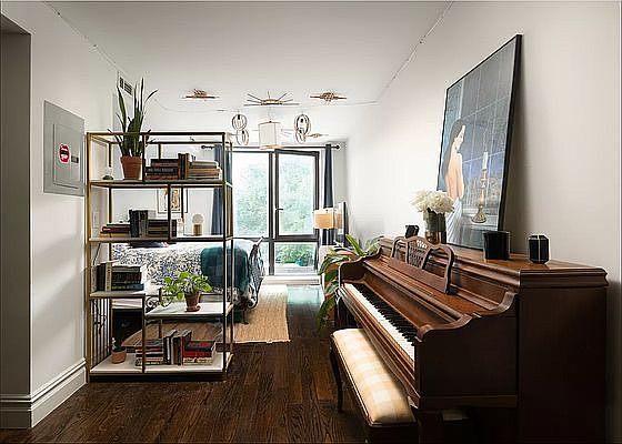 Bright and sunny studio apartment with the perfect nook to create a private and cozy space. Fantastic new boutique condominium development with a historic church facade. This is prime Bushwick in Brooklyn's hottest neighborhood and only one convenient block from the JMZ line at Halsey Station! This brand new apartment features oversized windows for great natural light, unobstructed outdoor views, central heat/air, washer/dryer hookup, gorgeous white oak hardwood floors throughout, and Unitone video intercoms. The kitchen features Lagos quartz countertops with custom double square cabinetry, Fisher & Paykel and Bosch stainless steel appliances, a Summit recirculating hood, and a white porcelain farm style sink set against a classic white subway tile backsplash. The master bathroom features elegant Flash Bisel Blanco wall tile, Cementine black and white flooring, Aquabrass fixtures, Benoist reclaimed wood vanity, spa-like rain showerhead, and Duravit deep soaking bathtub for ultimate relaxation. Building amenities include a landscaped second floor roof terrace and bike storage. Situated in the heart of Bushwick, the apartment is minutes away from hot spots like vegan restaurant Toad Style, pizza at Roberta's, live music and drinks at Alphaville, cake and pastries at Buttah Bakery, Mexican at Tortilleria Mexicana Los Hermanos, coffee at The Platform, bbq at Arrogant Swine, and more.