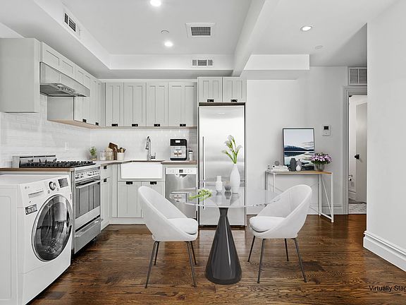 Grab this phenomenal studio while you can (4D is 1 of only 4 studios in the entire building). Central air, in-unit washer/dryer, floor to ceiling windows, impeccable kitchen & bath AND......available for primary residence use OR can be delivered with tenant in place! Apartment 4D boasts a sensible alcove layout with bright, eastern morning light. The kitchen, perfect for cooking, has been outfitted with Lagos quartz countertops, plentiful custom cabinetry, bright white subway tile backsplash, Fisher & Paykel and Bosch stainless steel appliances (dishwasher included), and large, white porcelain farm-style sink. Rich, dark-stained hardwood flooring abounds. The spa-like bathroom is gorgeous: Duravit deep soaking tub, Flash Bisel Blanco wall tile and Cementine black and white flooring, Aquabrass fixtures, Benoist reclaimed wood vanity that offers wonderful storage. Central air/heat, and of course, your very own washer/dryer. 1255 Bushwick is an elevator, voice-intercom building. Amenities include a landscaped second floor roof terrace, package room and bike storage. Located just one block from the JMZ trains at Halsey Street, it's an easy ride right into Manhattan, but feel free to stick around and enjoy this lovely Bushwick neighborhood with a plethora of dining and night life choices.