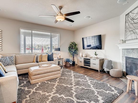 Welcome Home! Why wait for a new build when you can own this "like new" home. Light, Bright & Move-In Ready! This meticulously maintained home offers great space & functionality. Sitting on an oversized lot it offers plenty of outdoor space. Warm weather is soon upon us, enjoy it with a luxury outdoor kitchen, extended outdoor living space and a built-in fire pit. Watch the kids play in the large backyard, while dinner cooks on built-in pellet grill. The large kitchen boasts a huge island that can seat up to 5 people comfortably. The granite counter tops were specially imported to compliment the beautiful marble backsplash. There are ample cabinets for storage, a large pantry & eat in dining area. The open floor plan allows ease of movement between kitchen, dining, living room and optional office spaces. Desirable layout with 4 bedrooms & 2 full bathrooms on upper level with a large bonus room. The master bedroom with large walk-in closet & upgraded en-suite bathroom is a perfect retreat. Wood laminate floors throughout the main level & carpet upstairs. The fully finished basement offers a large family room with built-in theater surround sound and a large gaming area, guest bedroom, exercise room, bathroom and ample storage. Close proximity to neighborhood parks and trails, within a short distance to Downtown Castle Rock. Ready for you to move in and enjoy!
