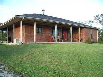 A beautiful ranch with a full, partially finished basement on five acres of land. This home includes a detached, 2 car garage with work area & storage. The large, fenced back yard is approximately 2+ acres. On the main level, there are 3 bedrooms, 2 baths, living room (with wood burning fire place & indoor/outdoor speaker system), eat-in kitchen, and ample cabinet space, pantry & closet spaces throughout. The appliances (smooth top stove/oven, microwave, fridge) are included. You will find an open family room area in the basement, including a gas fireplace, built-in shelving, wet bar, area for pool table, and additional 680+ sq. ft. of unfinished, storage space. Outside you can enjoy the gorgeous scenery on the porch that wraps around three sides of the home or gather around the fire pit in the backyard. Great opportunity to have a lovely home in the country with plenty of wide open space. Email or call Curtis at 502-316-3893 for more information.