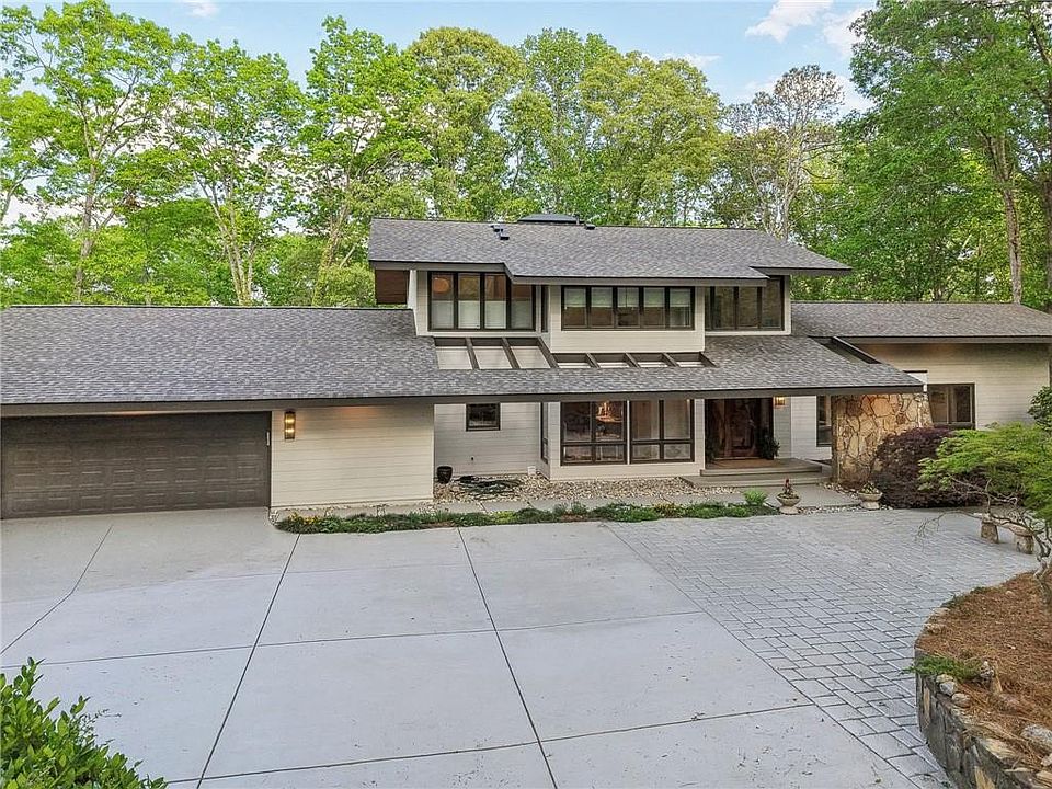 Step into this stunning Frank Lloyd Wright-inspired home, where impeccable craftsmanship and modern updates offer a truly breathtaking living experience. Extremely private and nestled on 4.25 acres in the prestigious Litchfield Hundred neighborhood, this mid-century modern estate is a rare find in one of the most sought-after areas of Roswell. Featuring 5 bedrooms, 5 full baths, and 1 half bath, the home offers space, serenity, and sophisticated style. Upon entering through a custom solid mahogany door, you are greeted by a striking floating staircase and rich oak woodwork that seamlessly blends modern sophistication with timeless design. The heart of the home is its expansive living space, where a handcrafted Tennessee River stone fireplace sets the tone for cozy evenings, while the adjacent screened-in porch and deck overlook the lush backyard and resort-like pool, creating the perfect setting for outdoor relaxation and entertaining. The kitchen boasts a top-of-the-line Thermador induction cooktop, integrated KitchenAid appliances, and an oversized granite island designed for hosting. Adjacent, a fully equipped scullery offers convenience and style, complete with an extra dishwasher and wine/coffee bar. The home’s layout includes five spacious bedrooms, each with its own distinct character and abundant natural light. All closets throughout the home are outfitted with customizable Elfa closet systems, providing flexible and efficient storage solutions. The primary suite is a luxurious retreat, complete with a spa-like ensuite bathroom featuring a zero-entry steam shower, heated floors, and a custom Herman Miller Nelson Ball Bubble light. The primary bedroom also includes its own Tennessee River stone fireplace, creating a cozy, intimate atmosphere perfect for unwinding after a long day. Every bathroom throughout the home is designed with top-of-the-line Kohler Purist fixtures, porcelain tiles, and heated mirrors for a spa-like experience. The fully finished terrace level expands your living space even further, featuring a kitchenette, a large art studio, and the fifth bedroom with its own private bath—ideal for guests, multigenerational living, or creative pursuits. Step outside to your resort-like pool and private oasis, where the newly renovated deck with ViewRail aluminum cable railings and two built-in natural gas points offers the ultimate outdoor living experience. Surrounded by meticulously landscaped grounds and modern lighting, the ambiance is perfect for both quiet evenings and lively celebrations. Additional features include a new roof in 2024, custom cedar soffits, Nest thermostats, and an integrated smart home system—making this residence as functional as it is beautiful. This exceptional home and property offer a rare blend of distinctive architectural design, modern luxury, and natural beauty—creating a lifestyle experience unlike anything else in the area.
