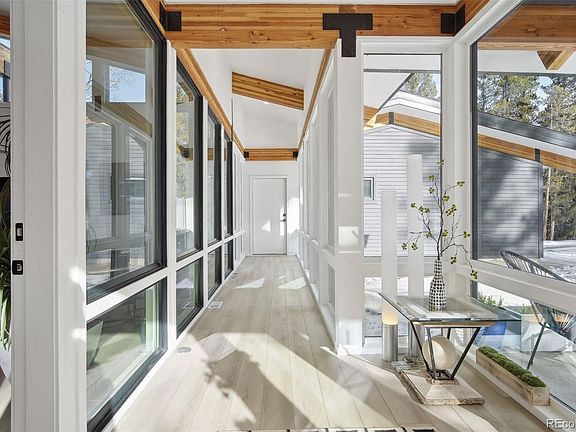 This exceptional contemporary mountain masterpiece on 2.4 acres will completely take your breath away! No expense was spared in the design or construction of this stunning Black Hawk retreat, with custom architectural selections optimizing every aspect of the home. You'll love cooking and entertaining in the luxury kitchen with its 18.5 ft. quartz waterfall island, handmade jade Moroccan tile, top-of-the-line stainless steel appliances, and induction cooktop that boils water in just 90 seconds. Prepare to be enraptured by the views of Grays and Torreys Peak from the open kitchen/dining/living room and their expansive 10'4" windows and Juliet balcony. Carefully placed skylights and up to 17 ft. cathedral ceilings make the home feel exceptionally light, bright, and airy, while the atrium garden brings the outside in year-round. The primary bedroom suite features soaring ceilings, a second Juliet balcony, and a splendid primary bathroom with a luxurious 9 x 4 ft. shower boasting 8 shower faucet zones, marble tile, and a 72” floating teak double vanity. The guest suite offers more soaring ceilings, an included armoire, and second incredible bathroom with a 63 gallon soaker tub, wall-mounted waterfall faucet, hand shower, 72" floating teak double vanity, and space for laundry. The attached garage is perfect not just for parking vehicles, but also for storing all of your mountain tools and toys (a snow blower is included for the driveway and the county plows the main road). An exterior enclosed dog run keeps furry friends secure. Footers are already in place for those who'd like a large outdoor balcony, and the living room is already plumbed for gas for those who would like to add a fireplace. Phenomenal access to the restaurants, shops, and casinos of Black Hawk and Central City, and an easy drive to Denver. So many trails and nearby amenities for all of the outdoor enthusiasts! This home is an absolute MUST SEE! Showings begin March 2nd. Buyer to verify all information.